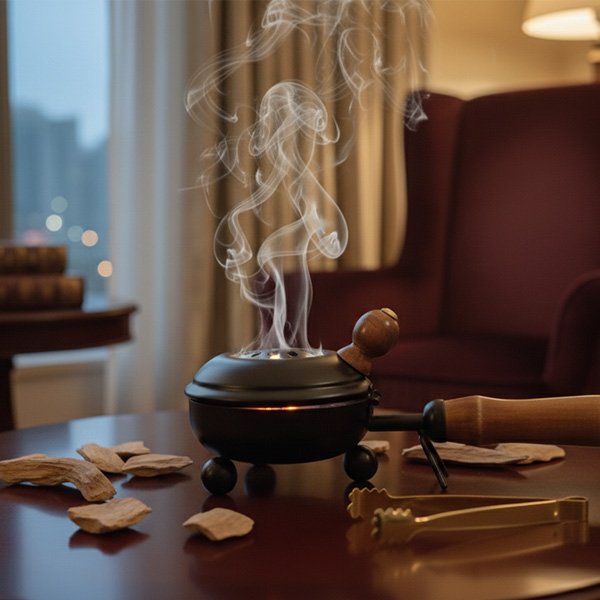 Experience luxury and calm with our traditional incense burner, designed to fill your space with soothing aromatic smoke. Paired with rich oud wood chips, it creates a warm, hotel-like ambience of elegance and comfort.