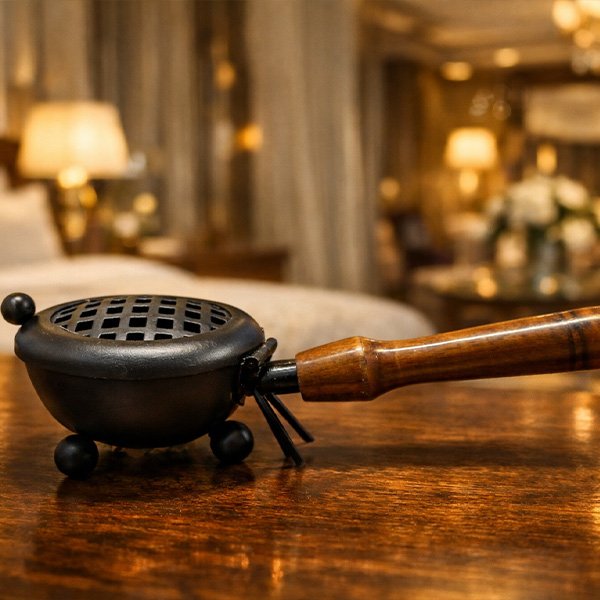 Experience the art of Arabic fragrance with our premium charcoal bakhoor burner. Designed in a sleek matte black finish with an elegant wooden handle, it offers a refined way to burn bakhoor and oud chips while filling your space with a rich, long-lasting aroma.